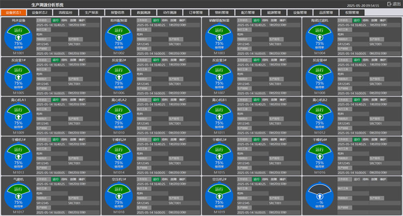 生产实时状态 流程监控 生产报表 报警信息 数据溯源 动作溯源 订单管理 物料管理 配方管理 能源管理 品质管理 |
